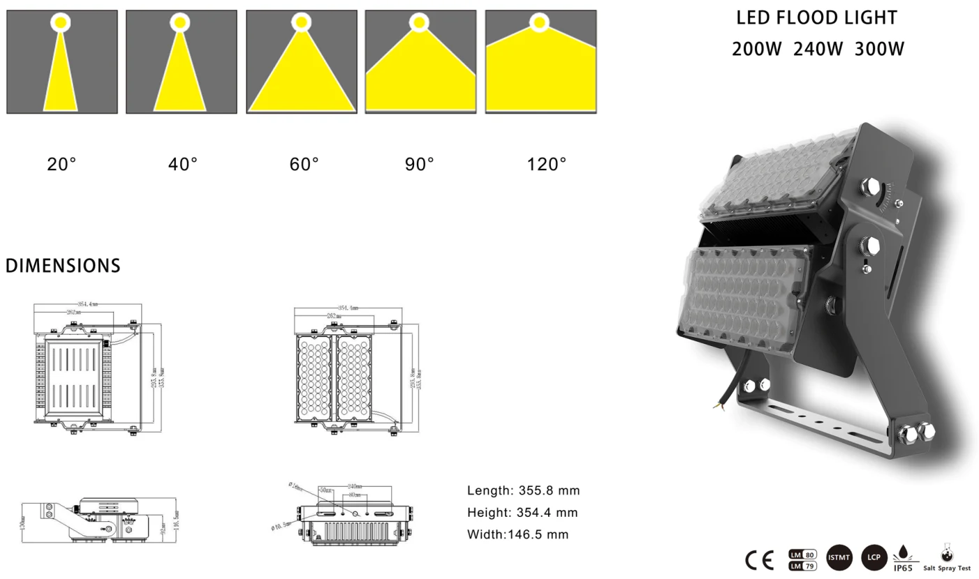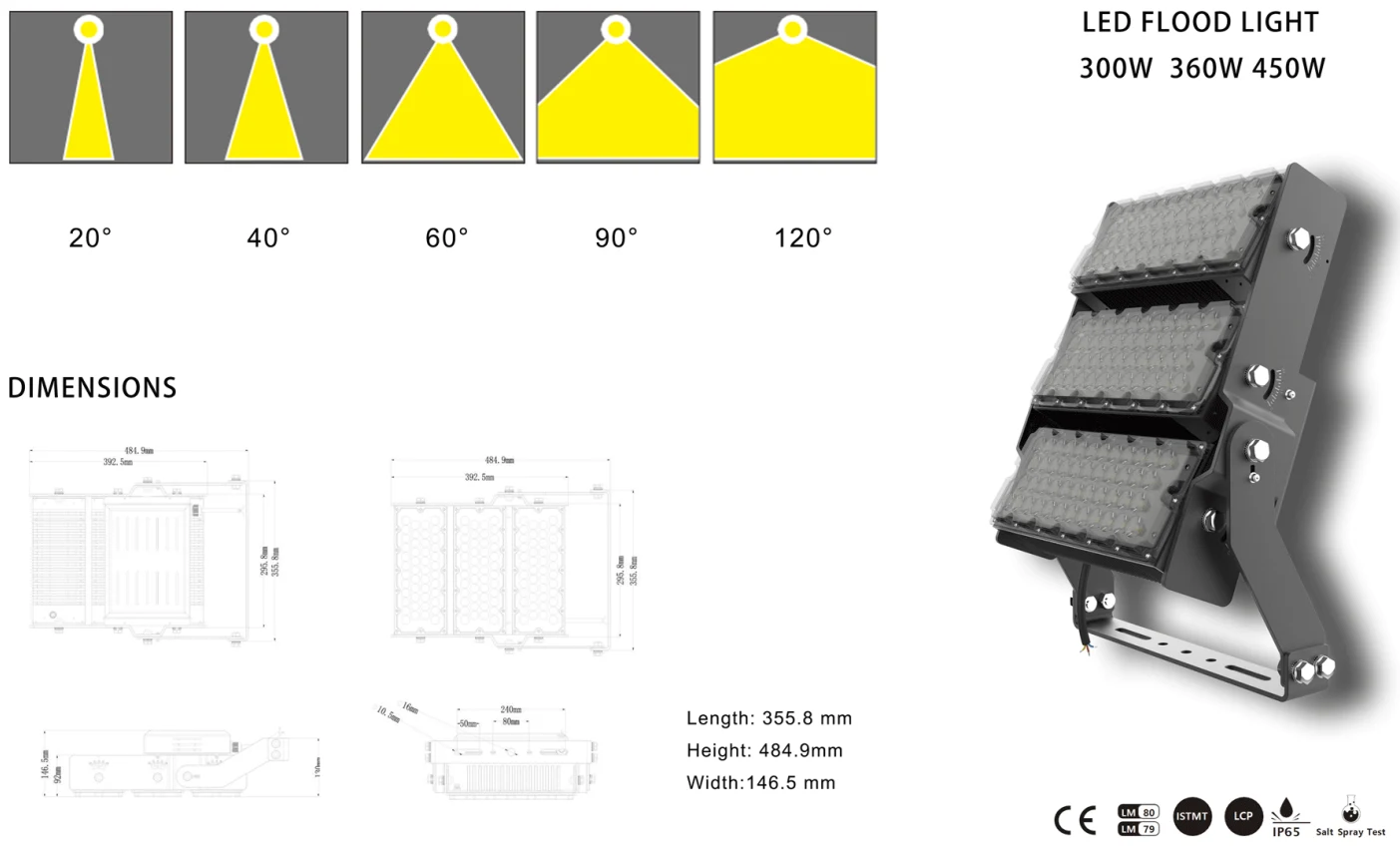· फ्लडलाइट किंवा हाय बे म्हणून स्थापित केले जाऊ शकते